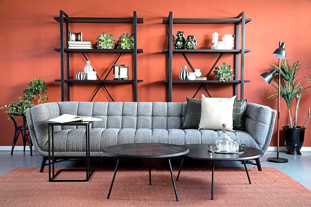 ספה תלת אפורה מעוצבת עם שלושה עד חמישה מקומות ישיבה